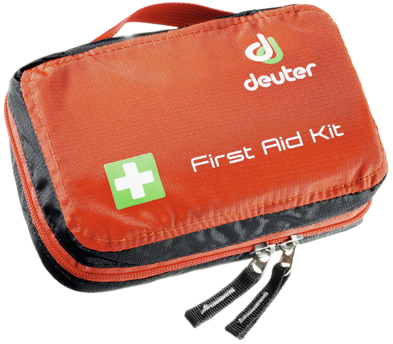 De eerstehulptas van Deuter met de beste basisuitrusting – geselecteerd op basis van medische aanbevelingen. Het wordt ook gebruikt voor de eerste hulp bij zware verwondingen. Bevat verbandmateriaal, een pincet en instructies voor de eerste hulp aan gewonden. De hieronder vermelde items zijn basisuitrusting die u kunt aanvullen afhankelijk van uw reisbestemming.