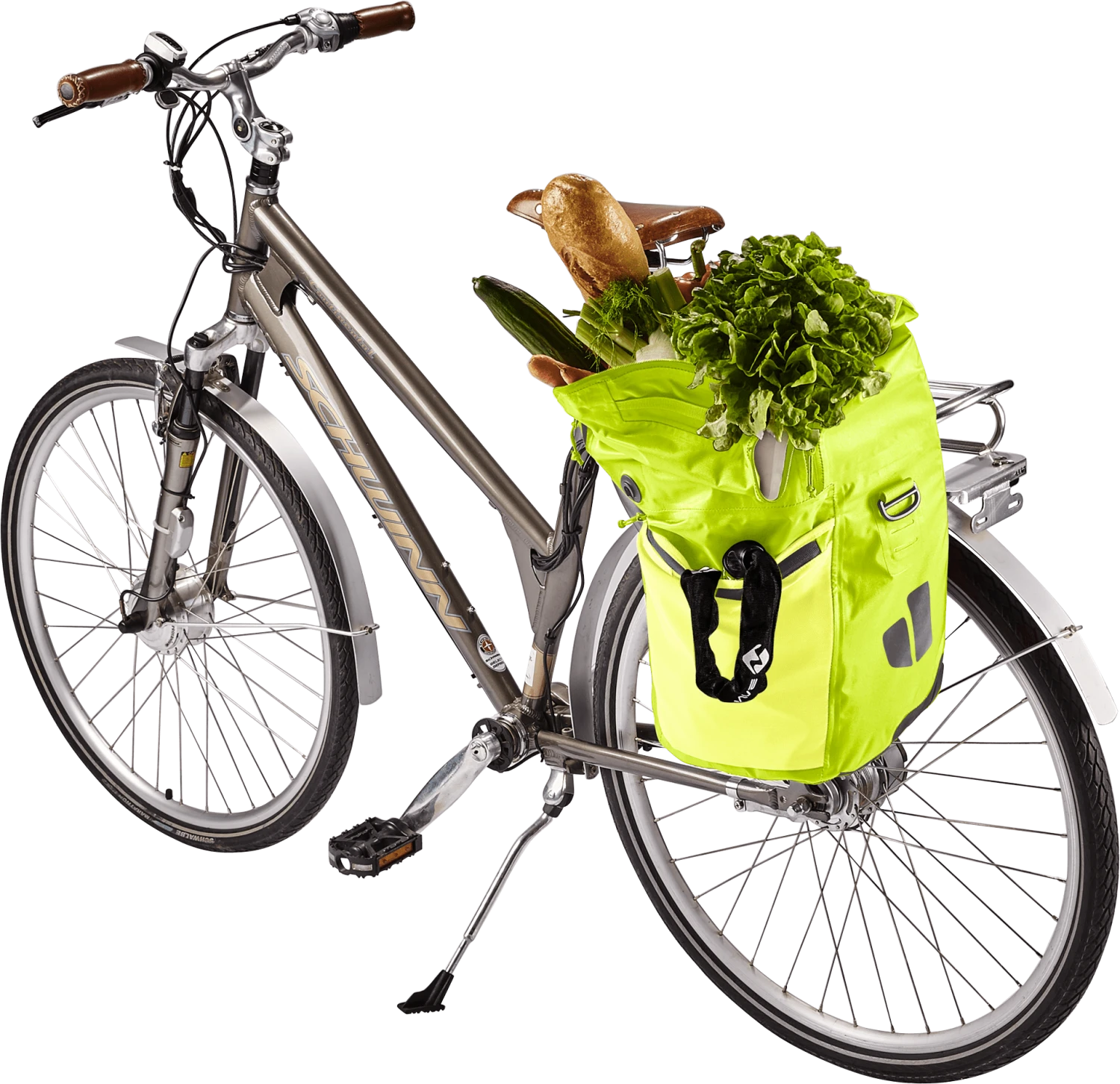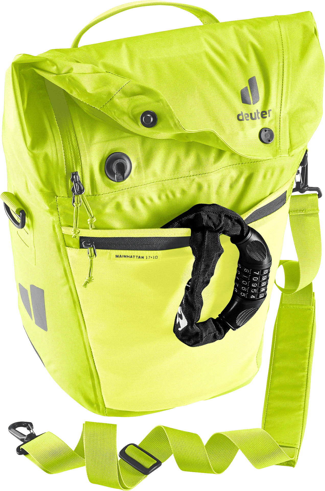 De waterdichte fietstas houdt boodschappen, een verandering van kleding en werkmateriaal veilig tegen nat worden in de regen of opspattend water. Dankzij de royale zakflap met magneetsluiting kan het volume van dit organisatietalent worden uitgebreid met 10 liter extra opbergruimte.