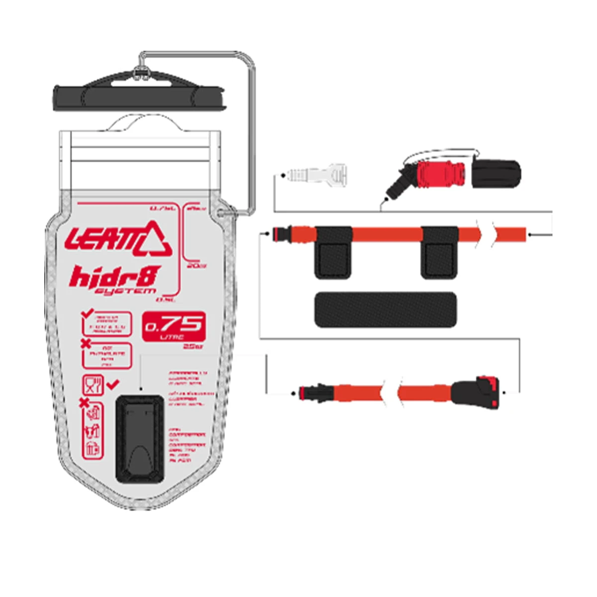 De hydration bladder van LEATT heeft een volume van 0,75 liter en is daarmee de kleinste in de LEATT familie. Bovendien heeft de hydratatieblaas een zeer grote opening voor optimale vulling en om een optimale reiniging te garanderen. De innovatieve constructie zorgt ervoor dat de blaas plat blijft en de vloeistof niet rondspettert. De blaas is op barsten getest. Ook op het snijvlak van hydratatiematerialen, vrij van ftalaten, BPA en PVC. De hydratatie blaas komt bij u thuis met twee slangen en bijt ventielen. Een hands-free buis met een 180° -klep en een standaard buis met een 45° -klep.
