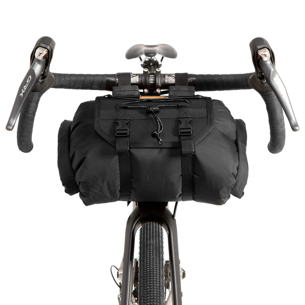 Onze Bar Bag is een ideale en probleemloze bagageoplossing voor bikepacking, touring of woon-werkverkeer op weg-, gravel- en mountainbikes. Zonder rekken, bevestigingen of gereedschap kan de tas in enkele seconden op elke fiets worden bevestigd. Foam spacers en veerbelaste nokkensloten zorgen voor een eenvoudige en betrouwbare bevestiging aan het stuur, terwijl twee onderste bevestigingsriemen zich om de kroon van de vork wikkelen voor extra stabiliteit.