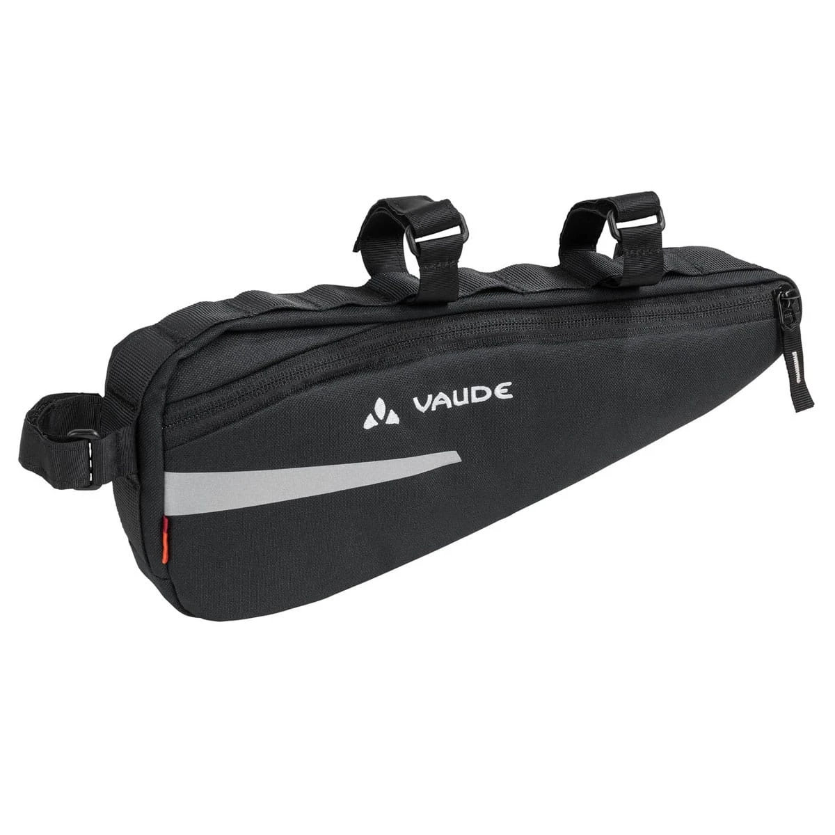 Kleine transporthulp. In de frametas is ruimte voor gereedschap, een minipomp en een energiereep voor noodgevallen. Het VAUDE Green Shape label staat voor een milieuvriendelijk, functioneel product gemaakt van duurzame materialen.